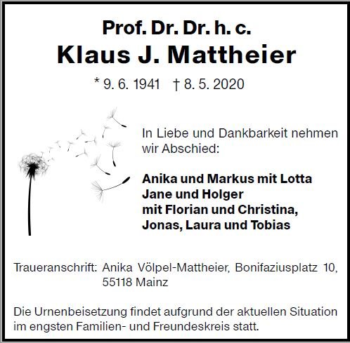 Professor Dr. Klaus J. Mattheiergestorben am 8. Mai 2020